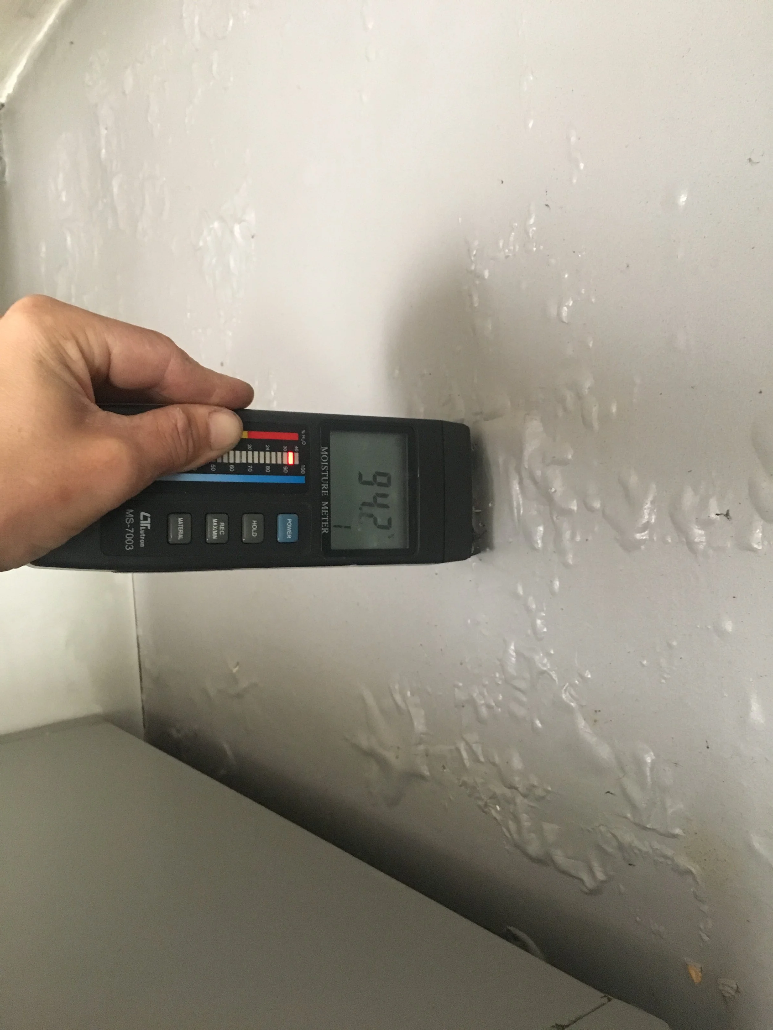 Mise en eau à l’aide d’un tuyaux d’arrosage : J’utilise une technique non destructive en arrosant avec de l’eau l’exterieur. En observant les variations d’humidité interieur et les éventuelles fuites, je localise précisément l’origine du problème.